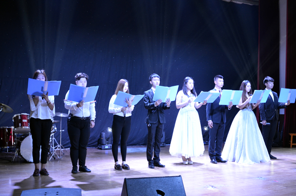 最后,学院党委书记李树和、副院长李平、装备制造与智能控制系刘博老师代表学院教职工演唱了歌曲《映山红》,使现场气氛达到高潮,学院领导和教师的的歌声里充满着积极向上的正能量,鼓励走在青春路上的同学们要满怀激情与希望,不断开拓进取。