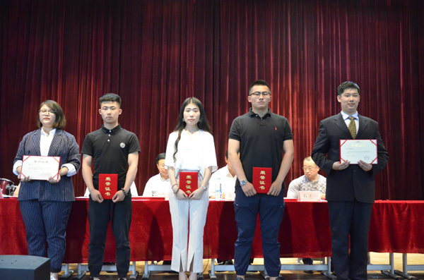 典礼在雄壮的国歌声中开始。首先,学院副院长孙海军宣读了延边职业技术学院2017届毕业生名单;副院长李平宣读了学院《关于表彰2017年先进班级、优秀学生、优秀学生干部的决定》。学院团委书记刘丽艳同志宣读学院《关于表彰2017年优秀团支部、优秀团员、优秀团干部的决定》。党委书记李树和、院长金永男为获得表彰的同学分别颁发证书奖状,并号召全院学生在校期间向努力学习、奋发向上、全面发展的优秀学生学习,再接再厉,锐意进取,勤学善思,牢记使命,与时代共进步、与人民同呼吸,用知识的力量成就梦想、改变世界,为社会发展和人类进步做出贡献。