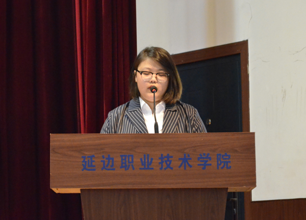 毕业生代表143计算机专业张馨月同学回顾了自己在延边职院度过的三年难忘时光,感谢母校为她打下坚实的知识基础,塑造了正确的人生观、世界观和价值观,也赋予了她对行业发展的深刻理解和对前沿技术的敏锐嗅觉。她结合自己的成长、奋斗经历,从梦想、选择、坚持、能力、成长五个方面为毕业学子提出建议,希望同学们作为母校新一代的荣耀与骄傲,彰显学院特有的风格,不断提高能力和修养,在为祖国做贡献的过程中,实现个人的人生价值。