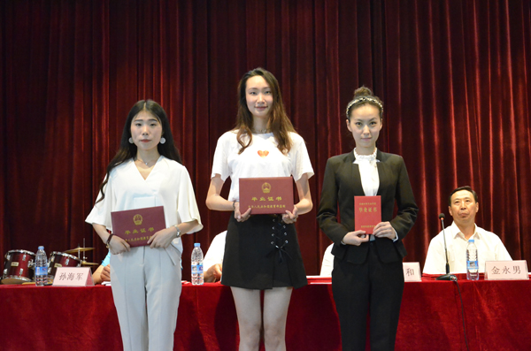 最后,金永男院长发表重要讲话。他要求同学们一是要坚守理想,永远保持对社会、对人民的忠诚和信念;二是要拥有海纳百川的胸怀和善于学习的习惯;三是要持有平和包容之心,敏于感知,拒绝平庸。同时,他也希望同学们能在平凡的工作岗位上建功立业,希望大家勤于学习,勇于实践,团结协作,努力成才,希望大家走出校门以后,不要忘了母校,不要忘了美丽的延边,继续关心母校的建设和发展,为母校更加美好的明天献计献策。