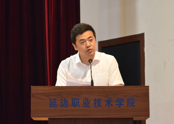 教师代表杨光强代表延边职业技术学院全体教师向毕业的学子们顺利完成学业表示诚挚的祝贺,祝愿他们杨帆起航,志行千里。他说,无论将来身在何处,都不要忘记母校“进德修业,知行合一”的校训,母校将永远伫立祖国东北为你们励志、喝彩,延职精神将永远震彻寰宇催我们奋进、图强。