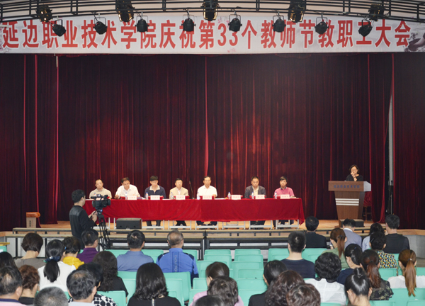 2017年9月8日下午,延边职业技术学院在学院东校区礼堂召开庆祝第33个教师节教职工大会。学院党委书记李树和、院长金永男、副院长许富家、副书记姜英玉、副院长方润奎、副院长李平、副院长石正一、副院长孙海军出席会议,出席会议的还有学院全体中层干部和教职员工。会议由党委副书记姜英玉主持。
