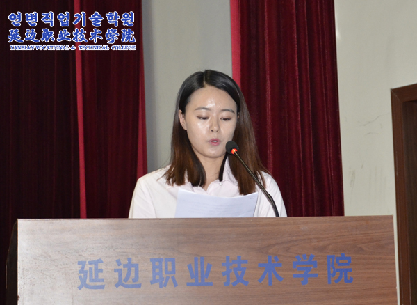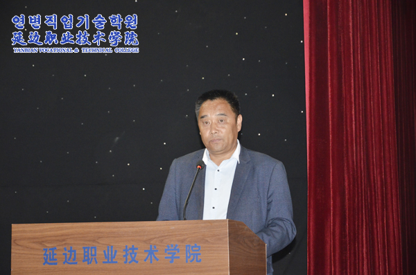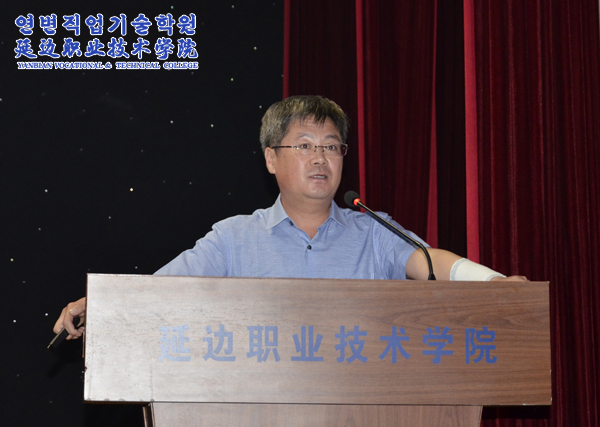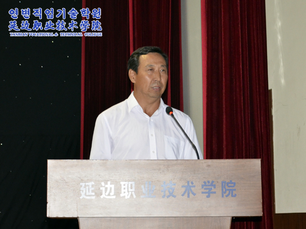院长金永男激情满怀的讲话更是春风化雨,润物无声,他将发言定位为“老师与学生之间的交流、两代人之间的沟通、忘年之交的朋友间的谈心”,重点讲解了高职教育在我国教育体系中日益凸显的重要性,介绍了学院的风雨历程、办学优势,并以循循善诱的方式,与新生交流了为人、为学的见解,希望他们利用各种学习资源和机会,勤于思考、敏于创新,不断超越自己。最后,他寄语全体师生,要以延边职业技术学院为一方沃土,尽情播种,享受收获的喜悦;以延边职业技术学院为一方热土,挥扬青春,铸就职业的精神;以延边职业技术学院为一方乐土,创业创新,开启辉煌的未来。