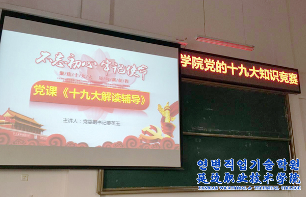 为认真贯彻党的十九大精神,深入学习领会习近平新时代中国特色社会主义思想,掀起我院师生学习贯彻十九大精神的热潮,2017年11月22日下午,学院党委组织宣传部、团委、学生工作处在学院西校区综合楼联合举办学院大学生“党的十九大”知识竞赛。