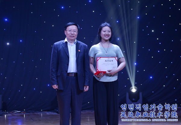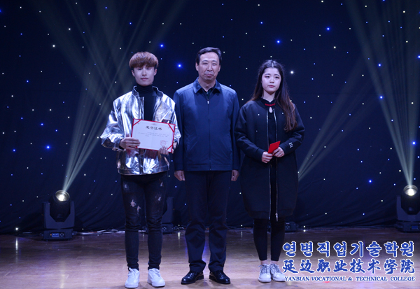 本次文艺汇演在学院党委书记李树和的致词中落下帷幕。旅游与韩国语系合唱团的《光荣啊!共青团》《我的未来不是梦》获得合唱比赛一等奖,财经商贸系合唱团的《义勇军进行曲》《打靶归来》、装备制造与智能控制系合唱团的《我们走在大路上》《歌唱祖国》获得合唱比赛二等奖,信息技术与艺术设计系合唱团的《红旗飘飘》《歌声与微笑》、汽车工程系合唱团的《强军战歌》《团结就是力量》、建筑工程系合唱团《歌唱祖国》《打靶归来》的获得合唱比赛三等奖。163旅游专业韩雪峰乐队的《老男孩》《再见》荣获个人及团体歌舞表演一等奖,西校区团委杨书天、王鹤凝和舞蹈社的歌伴舞《新的天地》、153韩语专业陈吉星同学的独唱《鸿雁》荣获个人及团体歌舞表演二等奖,学前教育系荣获特殊贡献奖。学院领导为获得各奖项的系部、参赛选手代表颁奖。