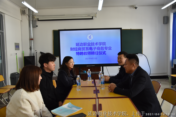 2021年4月13日,延边职业技术学院财经商贸系电子商务专业在学院3号楼207室举行特聘教师聘任仪式,聘任延边北斗教育文化传播有限公司总经理李永胜为学院财经商贸系电子商务专业特聘教师,聘用期为三年。学院副院长副院长崔光勋、财经商贸系系主任金延梅、财经商贸系教研室主任杨镇奉及电子商务专业教师参加仪式。仪式由财经商贸系系主任金延梅主持。
