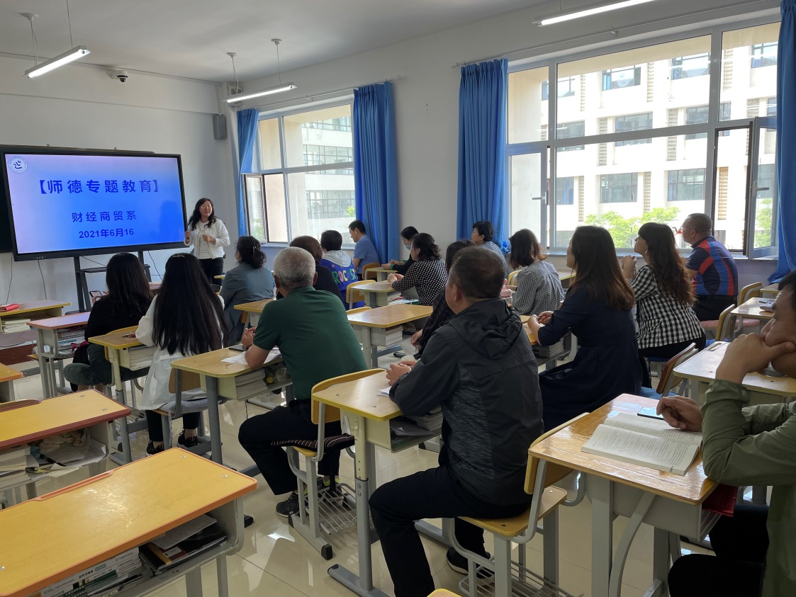 2021年6月16日下午,财经商贸系在3号楼201教室召开“师德专题教育”学习交流会。学院副院长崔光勋出席交流会,财经商贸系全体教师参加会议,会议由系主任金延梅主持。