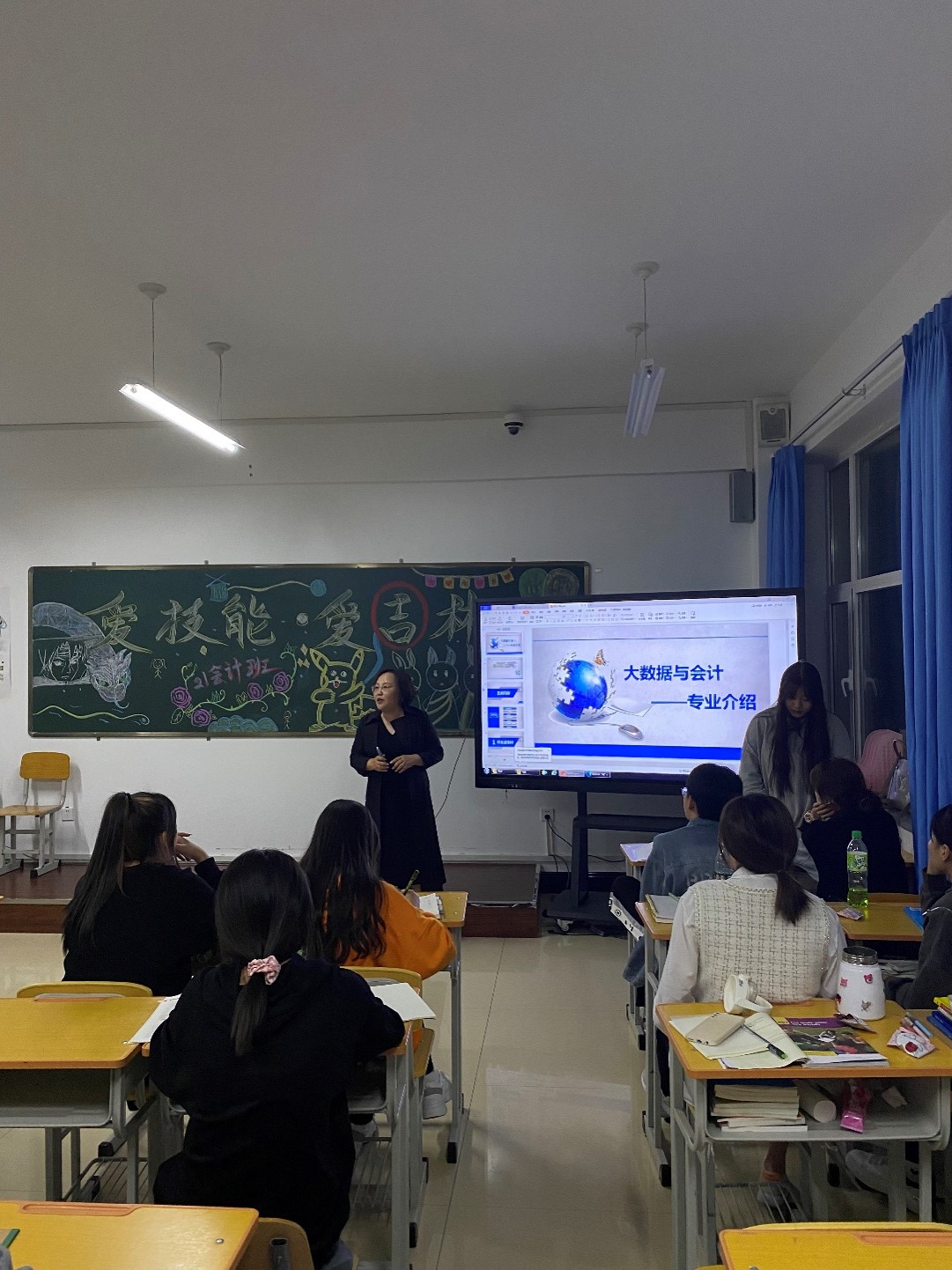 财经商贸系(会计专业)在2021年9月28日利用晚自习期间丁剑老师对21级会计新生进行了专业教育,会中对大数据与会计专业做了详细的介绍,包括本专业开设的课程、学分的计算、就业前景、学院的各项规章制度等内容,并且会后与学生进行了深入的交流。
