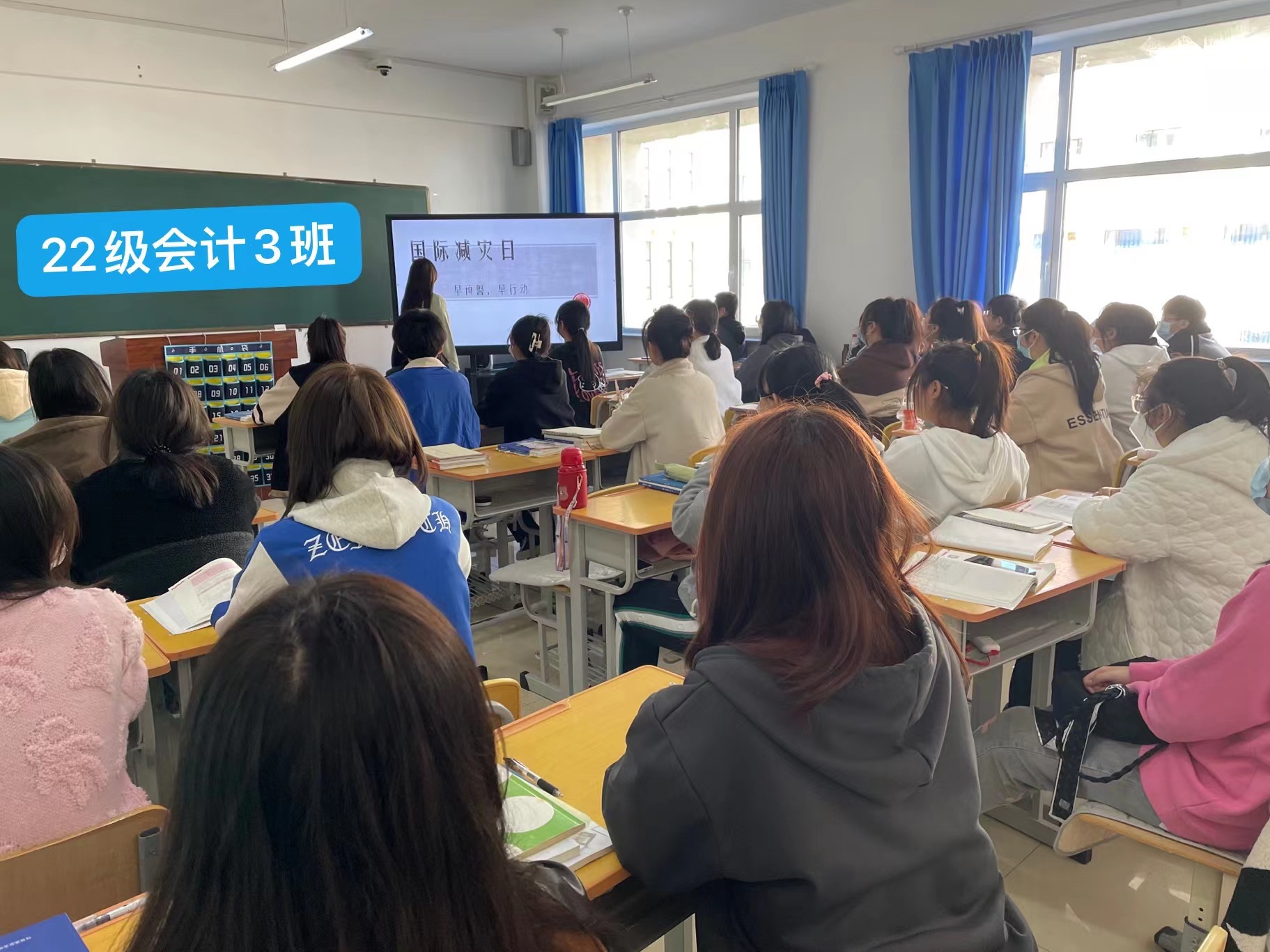 2022年10月13日第33个国际减灾日,按照学院要求,财经商贸系各班开展“国际减灾日”主题班会。