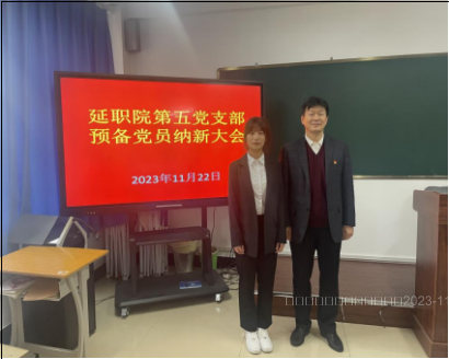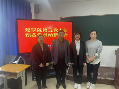2023 年 11 月 22 日中午 12:30,延职院第五党支部在教学楼 3 号楼 208 教室召开预备党员纳新大会,讨论接收管清华同志为中共预备党员。支部全体党员到会,学院党委委员、副院长崔光勋出席会议并予以指导。