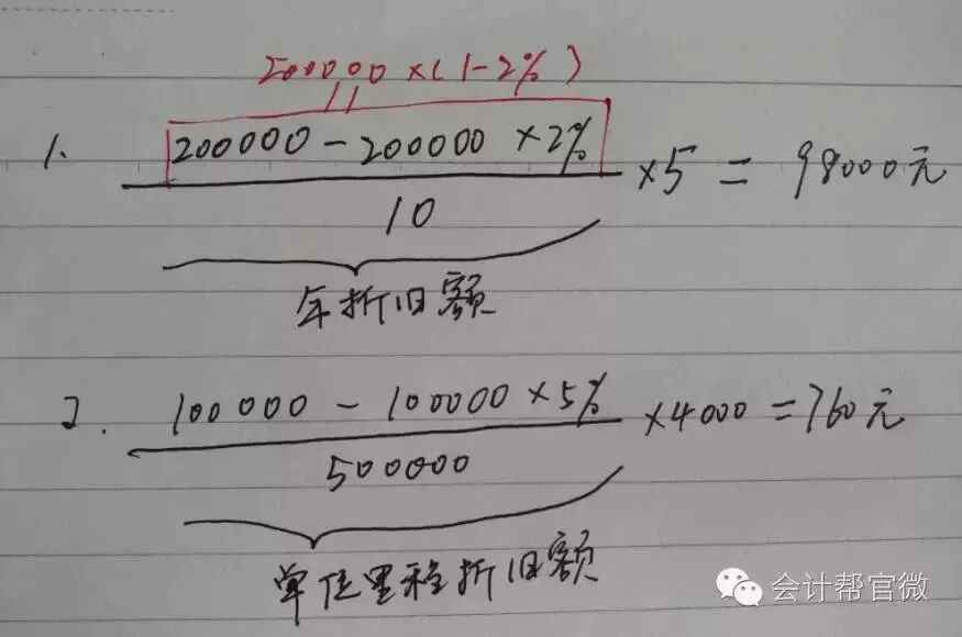 1.如给的是预计净残值率,也可以把它转化成上述公式,例如原值为A,预计净残值率为5%,预计工作量为B,则,