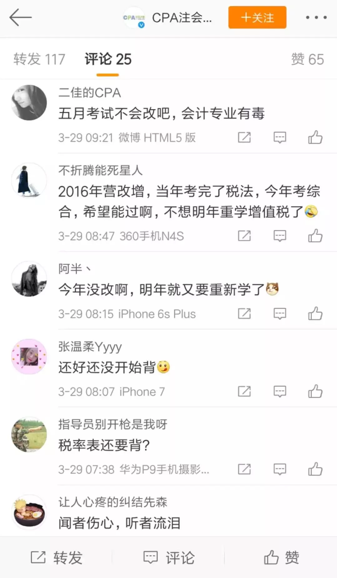 因为学生党来说,还有一个致命的影响就是——我们的考试内容又要变化了,税法又双叒叕白学了!看看这些网友忧伤的表情: