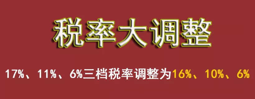 适当降低税率水平。将制造业等行业增值税税率从17%降至16%,将交通运输、建筑、基础电信服务等行业及农产品等货物的增值税税率从11%降至10%,预计全年可减税2400亿元。出台上述改革措施后,现行17%、11%、6%三档税率调整为16%、10%、6%。说明明确了以后就剩下16%、10%、6%了,新三挡税率正式确定!