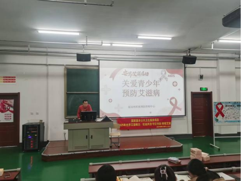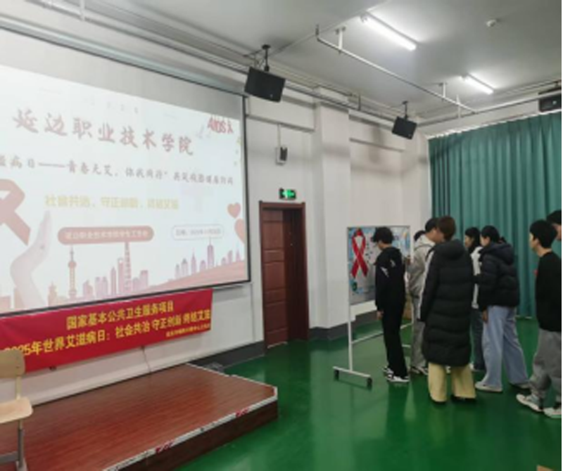 在第38个世界艾滋病日来临之际,为响应“社会共治、守正创新、终结艾滋”年度主题,2025年11月26日,延边职业技术学院学生工作处联合延边州疾控中心、朝阳川镇中心医院,共同开展预防艾滋病主题宣传教育活动,为200余名学生送上专业防艾知识与健康防护指导。活动现场,朝阳川镇中心医院医务人员为学生佩戴红丝带,发放防艾知识手册及安全防护用品。州疾控中心专家以专题讲座形式,从艾滋病流行趋势、传播途径、科学预防等方面系统科普,通过“案例解析+互动问答”,针对性纠正“共餐传染”“蚊虫叮咬传播”等认知误区,强化“早检测、早发现、早治疗”的健康理念。本次活动突出“自身健康第一责任人”理念,构建“高校+疾控+学生社团”长效宣传机制,将《艾滋病防治核心知识与青春防护指南》等纳入校园宣传重点。学生们庄严承诺树立健康恋爱观,并在“防艾抗艾、你我同行”留言板签名。同时,学生工作处还组织各班级开展“防艾抗艾”主题班会,通过观看宣传视频、小组讨论、案例分享等形式,帮助学生掌握防护技能,消除对艾滋病感染者的歧视,营造包容友爱的校园氛围。系列活动让防艾知识入脑入心,为青年学子筑起坚实的健康屏障。