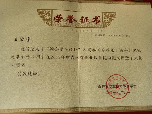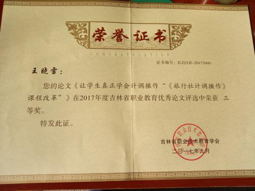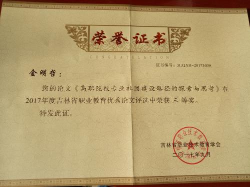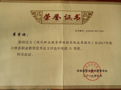 2017年度吉林省职业教育学会优秀职教论文评选中,我院5名教师获奖