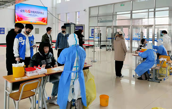 认真严谨负责,高质量完成学院八轮全员核酸检测工作。在学院领导班子的坚强领导下,党员干部突击队和师生团员先锋队分工协作,不畏艰难、默默付出,按照“应检尽检、不漏一人”要求,安全有序地组织在校生和住校教职工分类、分批次完成八轮全员核酸检测工作。在核酸检测现场,学院党委书记杨新民亲自指挥,班子成员分工协作,党员干部突击队和师生团员先锋队全程到岗,组织学院保障人员、在校学生进行核酸检测,顺利完成采样工作,八轮全员核酸检测结果均为阴性。