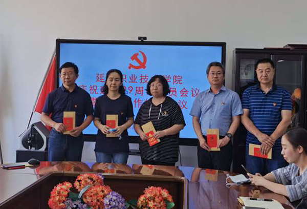 为庆祝中国共产党成立99周年,进一步推进学院党建思政工作,2020年7月1日下午,延边职业技术学院党委在4号楼305会议室召开学院庆祝建党99周年党员会议暨党建工作推进会议。学院院级领导、党委委员,各党支部书记、党员代表参加会议。会议由学院党委副书记姜英玉主持。不在学院会场参会的学院党员以视频会议形式参加会议。
