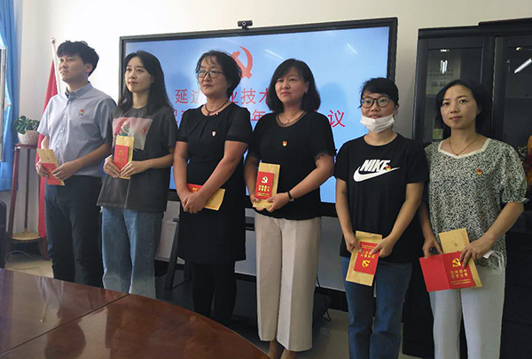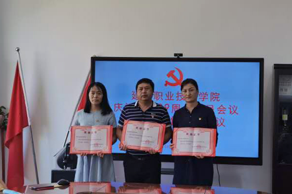 会议在雄壮有力的国歌声中拉开帷幕。学院党委副书记姜英玉宣读《学院党委关于表彰学院2019年度优秀党员、优秀党务工作者和先进党支部的决定》。学院党委书记李树和,院长金永男,副院长方润奎、孙海军、崔光勋、史春旺为田丽娜等18名优秀党员、王琦瑞等2名优秀党务工作者及学院第二、第四、第五三个先进党支部颁发证书。