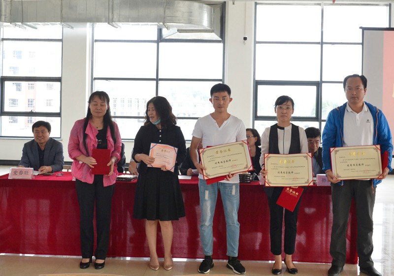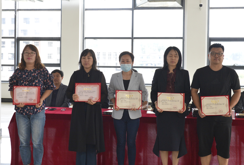 教务处处长李今花宣布教师专项奖励名单,团委王晨馨在2019年度援疆支教工作中被评为“优秀教师”荣誉称号,中共阿勒泰地区委员会授予王晨馨“第九批省市优秀援疆干部人才”荣誉称号;装备制造与智能控制系刘树艳、杨涛,信息技术与艺术设计系高秀艳在“全国高校教师教学创新大赛-3D/AR数字化虚拟仿真主题赛项”比赛中获得三等奖;公共教学部杨晶在“全国高校教师教学创新大赛”第六届外语微课大赛中荣获吉林省一等奖,张黎黎荣获吉林省三等奖;信息技术与艺术设计系尹沧涛、李永、尹锁强指导学生参加2019年吉林省职业院校技能大赛-高职组“计算机网络应用”比赛荣获二等奖;建筑工程系马志超、陈钢指导学生参加2019年吉林省职业院校技能大赛高职组“BIM施工项目管理应用”比赛荣获二等奖;建筑工程系金松梅、崔丽指导学生参加2019年吉林省职业院校技能大赛高职组“建设工程岗位从业技能仿真”大赛荣获二等奖;财经商贸系孙玉贤在“1+X智能财税职业技能等级证书”网络师资研修班中授予“创新贡献奖”;财经商贸系金春花、孙玉贤在2020年第二届“科云杯”全国职业院校高职组税务技能大赛中带领学生荣获三等奖,被授予“优秀指导老师”称号;建设工程系马志超、金松梅、方志刚、陈钢在2019年吉林省求实杯大学生智慧建设创新创业大赛中荣获“优秀指导教师”荣誉称号,学院领导为获奖教师颁发荣誉证书,感谢他们为学院教育教学工作做出的重大贡献。