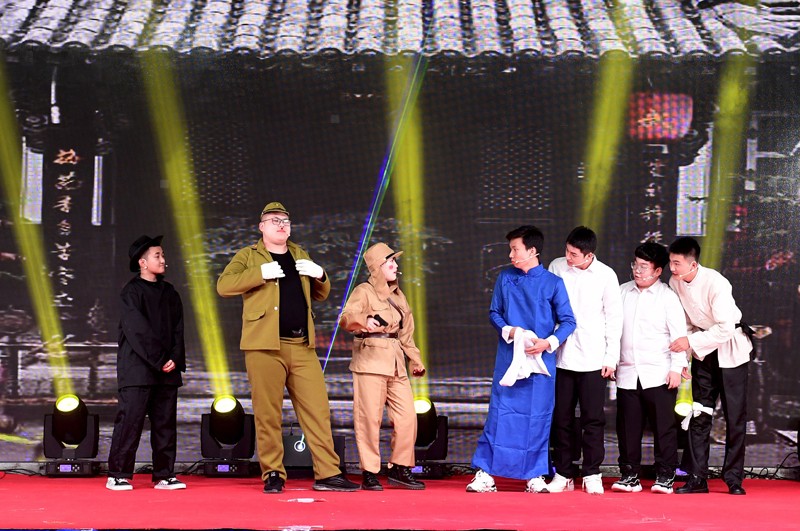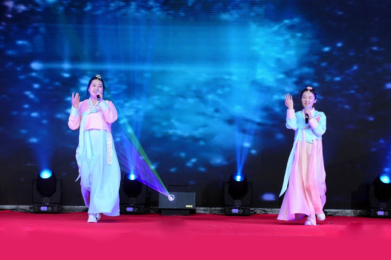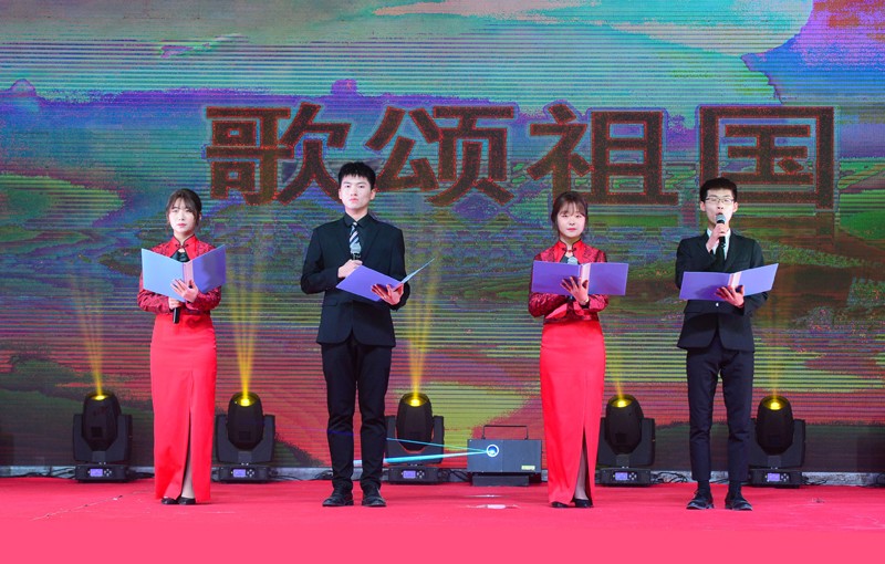 学院女教师表演的舞蹈《金达莱》拉开演出的序幕,激情澎湃的诗朗诵《歌颂祖国》、礼仪社团成员身着汉服表演的舞蹈《礼仪之邦》,喜剧社团学生们表演的小品《小武馆》、歌曲《给你看》和舞蹈社团表演的街舞《热力节拍》等精彩表演呈现了丰盛的视听盛宴。主持社带来的舞台剧《在“疫”起》为同学们讲述了“逆行者”们不顾一切冲上前线的动人故事;音乐社的乐队表演唱《红色高跟鞋》《我爱你中国》激情四射;舞蹈《芳华》的精彩表演为活动增添了别样的风采,男女二人唱《光辉岁月》主唱超强的舞台感染力使得台下掌声不断;舞台剧《誓言》表演绘声绘色,深刻传达了一片赤诚爱国心;舞蹈《舞动青春》让人在活动感十足的舞蹈中领略现代大学生的激情。183旅游专业白洁表演的独舞《共生》展现出超强的功底,让观众们充分领略了舞蹈的魅力。韩语专业同心社团的《四物乐》演奏向师生们展示了中国朝鲜族传统民族乐器的魅力,大合唱《同一首歌》道出了同学们青春的蓬勃与热情,展现青年对祖国的敬爱之心。