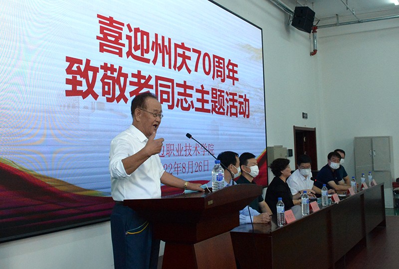 在喜迎党的二十大胜利召开和庆祝延边朝鲜族自治州成立70周年之际,根据州老干部局《关于开展“喜迎州庆 70 周年致敬老同志”主题活动的通知》要求,2022年8月26日,延边职业技术学院组织开展“喜迎州庆成立70周年致敬老同志”主题活动,学院党委书记杨新民,党委副书记姜英玉,副院长郑其广、崔光勋,纪委书记杨智,副院长李志好出席活动,学院前身原校级领导杨志强、郑洪波、徐昌植、佟桂琴、李平、南仁国、傅振华等100余名离退休老同志参加活动,活动由党委副书记姜英玉主持。