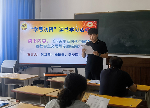 2023年7月,延职院第五党支部在3号楼209教室组织开展“学思践悟”读书交流活动,活动由支部书记全龙七主持。活动中四名党员从不同角度分别分享了学习《习近平新时代中国特色社会主义思想专题摘编》的读后感,营造学以致用、知行合一的良好氛围。