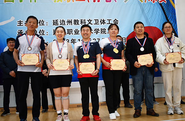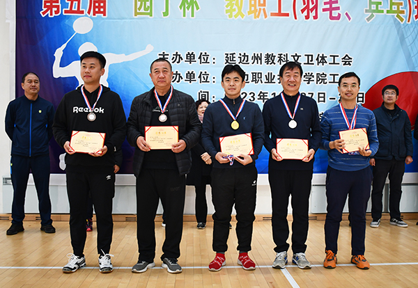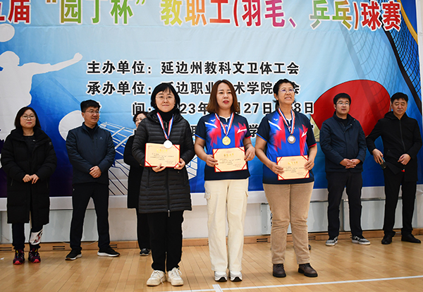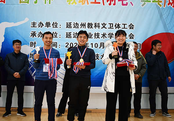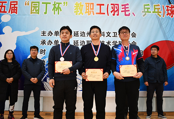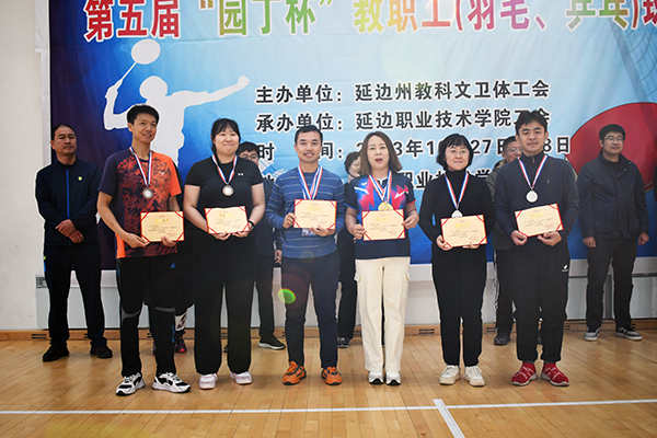 比赛中,运动员们团结协作、融洽配合,认真专注、挥汗如雨,精彩场面迭出,直拍、横拍、扣球、旋弧线球精彩频现。经过两天的比赛角逐,延边职业技术学院、延边一中、延边二中分别荣获羽毛球团体前三名,延边大学师范分院、延边职业技术学院、延边州教育局分别荣获乒乓球团体前三名。