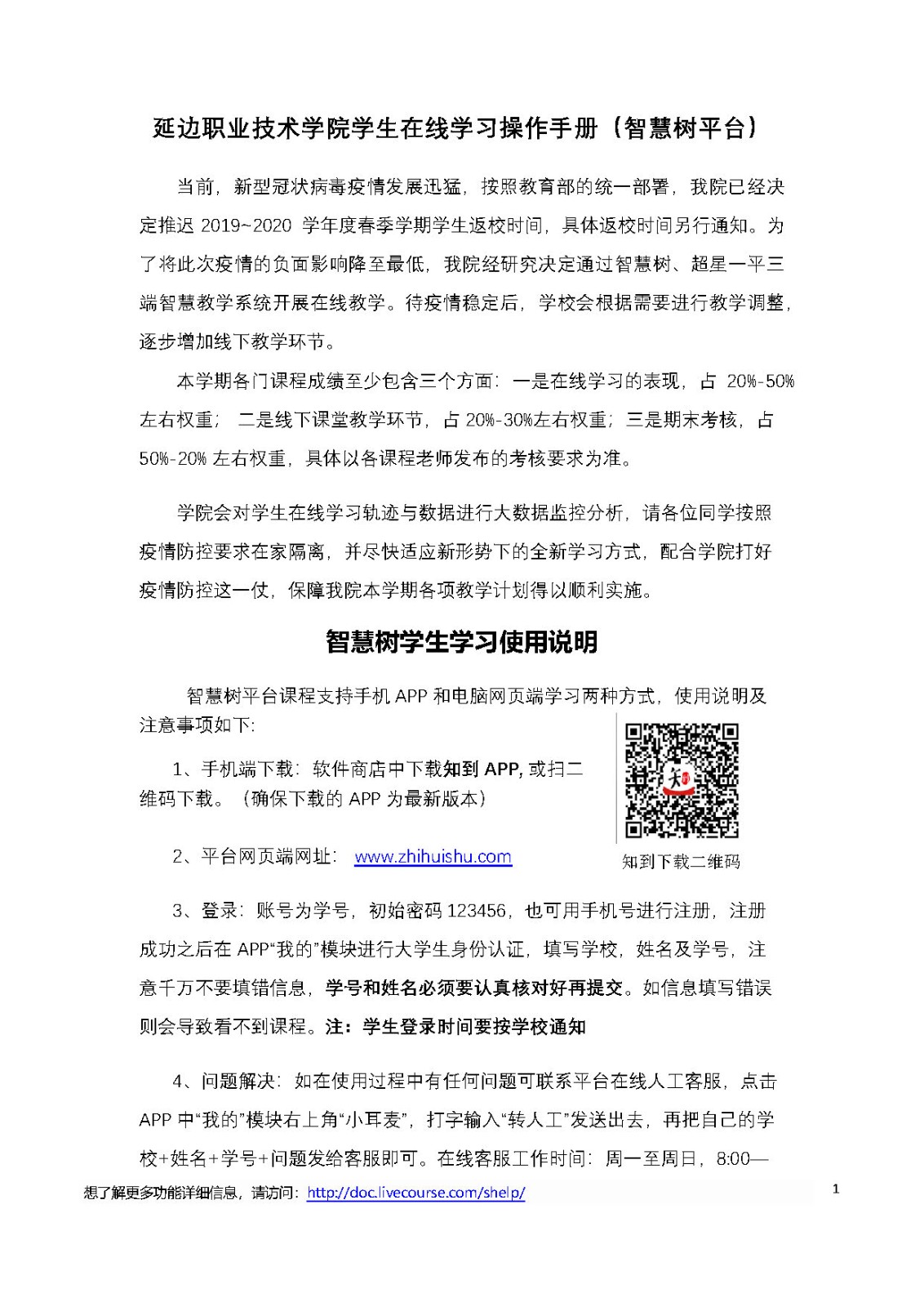 延边职业技术学院学生在线学习操作手册(智慧树平台)